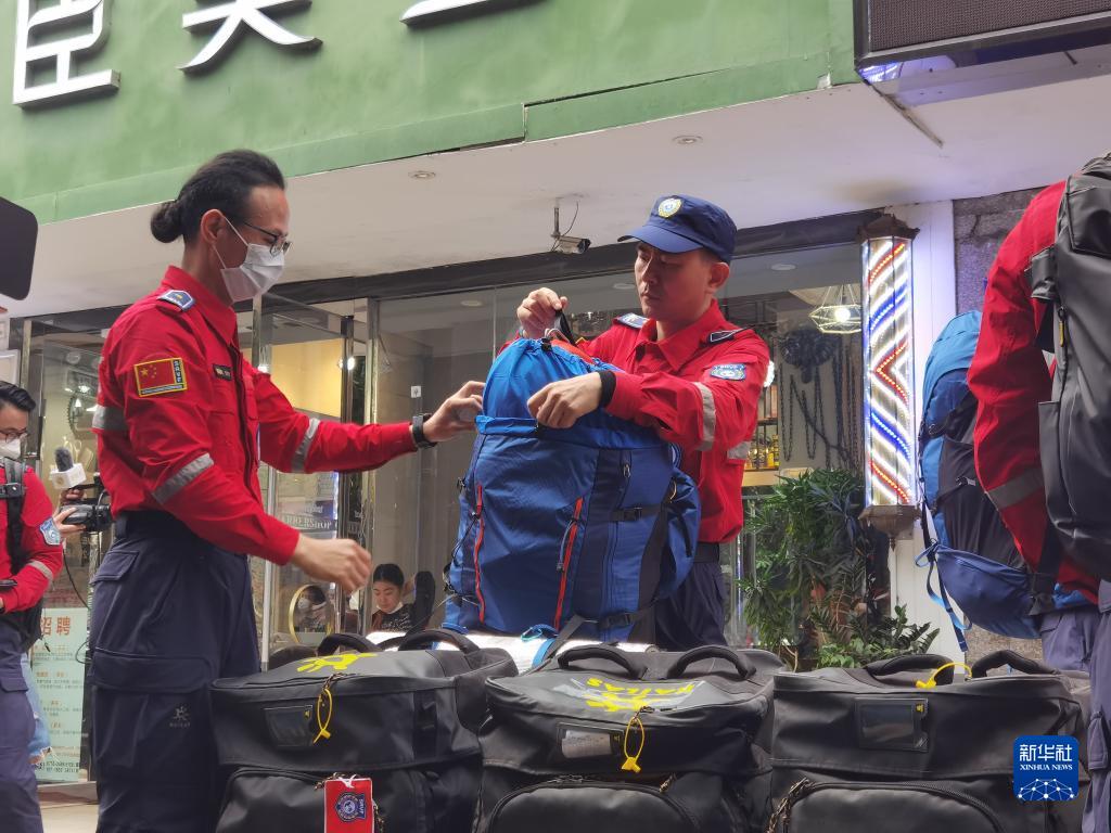 2月8日,深圳公益救援隊先遣隊隊員出發(fā)前檢查裝備。