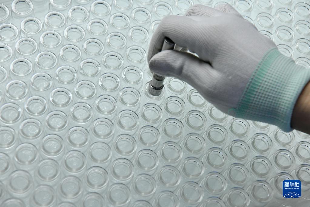 2月8日,在位于河北省滄縣的滄州四星玻璃股份有限公司,工人在潔凈檢驗車(chē)間檢驗新下線(xiàn)藥包玻璃產(chǎn)品。