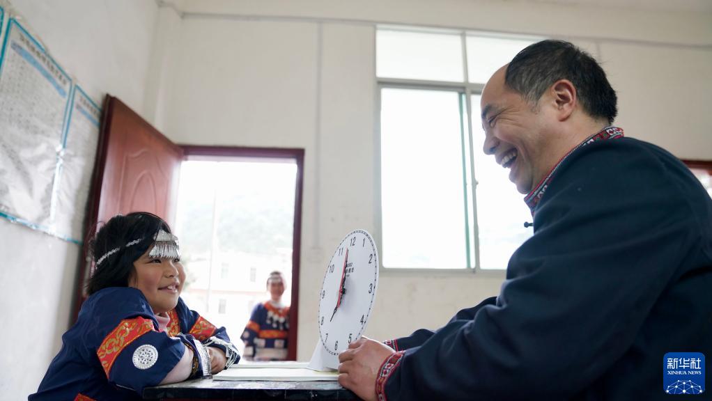 2月8日,鄧煙發(fā)在教室給學(xué)生趙羽舒講解時(shí)間相關(guān)知識。