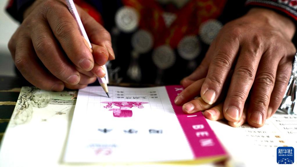 2月8日,鄧煙發(fā)在教室內指導學(xué)生王妍歡寫(xiě)字。