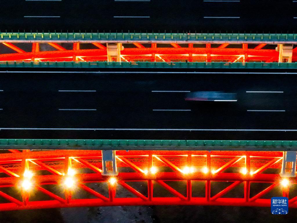 夜幕下的大發(fā)渠特大橋(2月2日攝,無(wú)人機照片)。