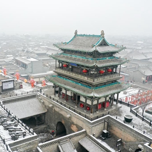 受冷暖空氣共同影響,山西晉中平遙古城迎來(lái)降雪天氣。初春的古城銀裝素裹,美景如畫(huà)。