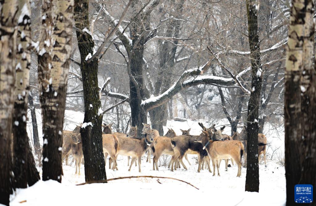 當日,內蒙古大青山國家級自然保護區迎來(lái)降雪,放歸于此的麋鹿在雪地上奔跑、嬉戲,構成一幅別樣的生態(tài)畫(huà)卷。
