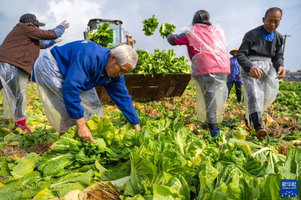 2月9日,在四川省眉山市彭山區公義鎮欣榮村,村民們在采收蔬菜。
