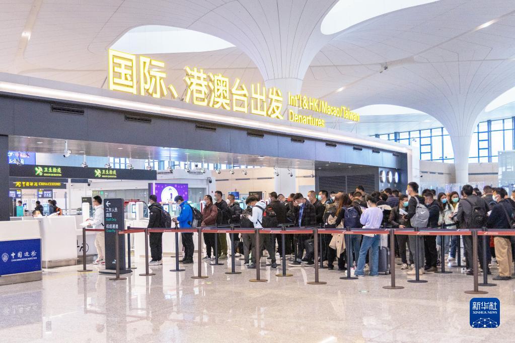 2月8日,準備前往印尼巴厘島的旅客在杭州蕭山國際機場(chǎng)T4航站樓排隊等待。