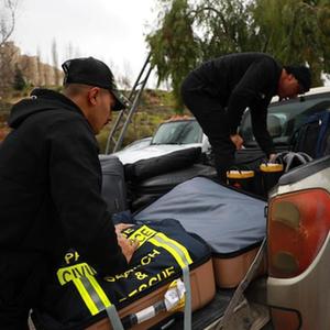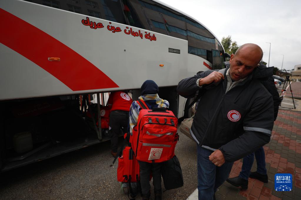 2月9日,在約旦河西岸城市拉姆安拉,巴勒斯坦救援隊隊員準備啟程奔赴震區。