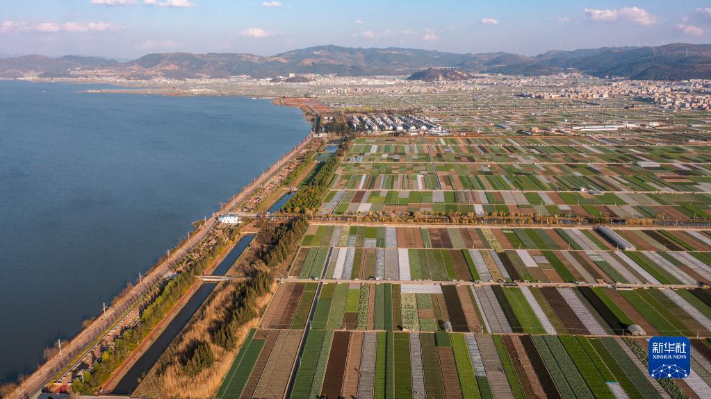 早春時(shí)節,云南省玉溪市通??h田園風(fēng)光秀美。五彩斑斕的農田與湖水、山巒交相輝映,構成了一幅美麗的畫(huà)卷。新華社記者 胡超 攝