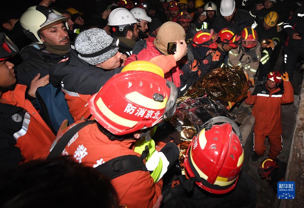在土耳其南部地震重災區哈塔伊省安塔基亞市,中國救援隊9日晚同土耳其救援隊合作,又救出一名被埋在樓房廢墟下的女性幸存者。