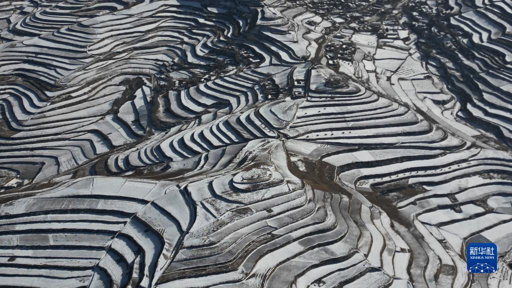 這是2月9日在甘肅省永靖縣陳井鎮拍攝的雪后梯田(無(wú)人機照片)。