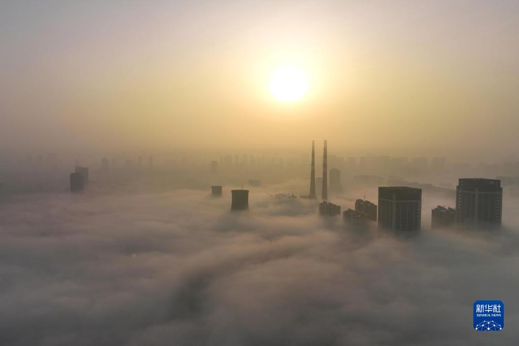 寧夏銀川出現平流霧景觀(guān)