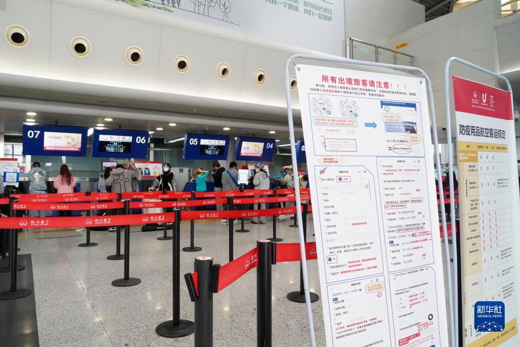 2月10日,在成都雙流國際機場(chǎng)T1航站樓,出境旅客在辦理登機手續。