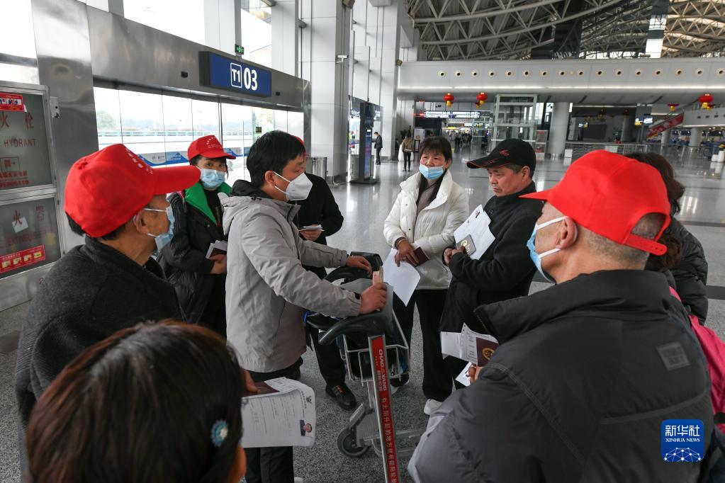 2月10日,在成都雙流國際機場(chǎng)T1航站樓,旅行社領(lǐng)隊向赴泰旅行團講解注意事項。