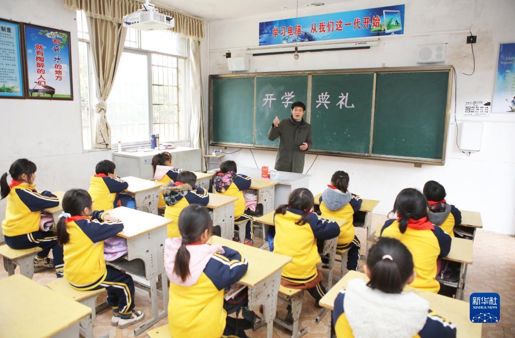 賴(lài)小田在開(kāi)學(xué)典禮上給同學(xué)們講解安全注意事項(2月9日攝)。
