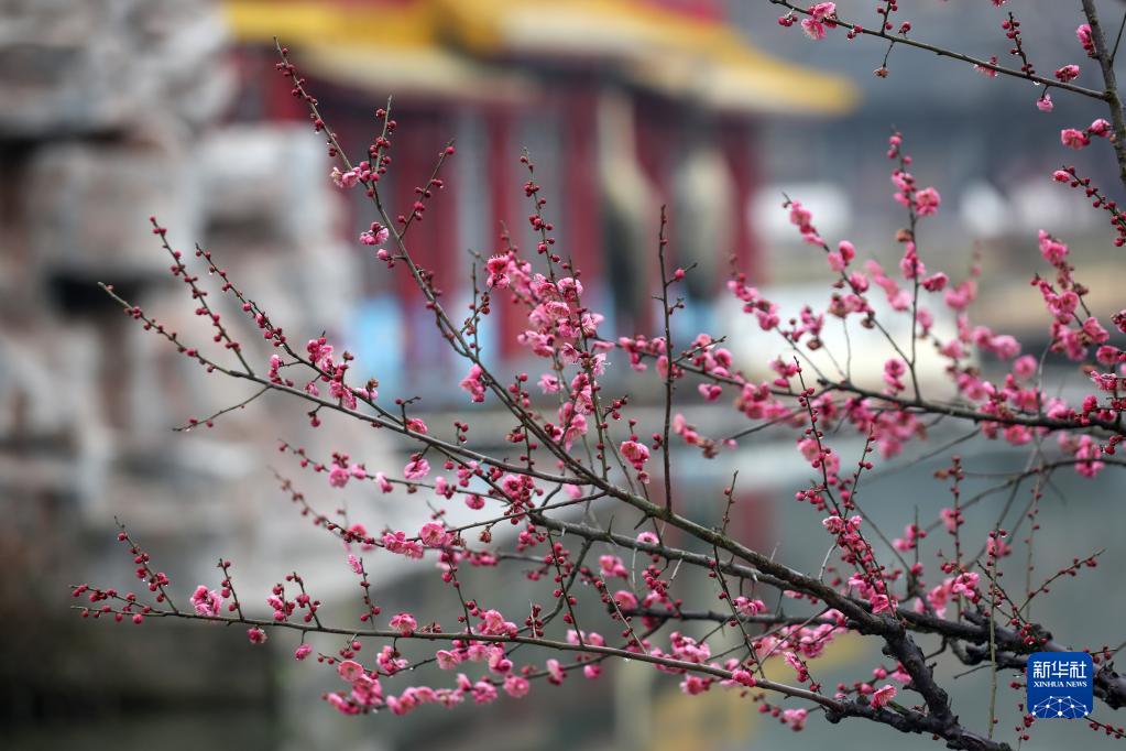 這是2月10日在江蘇揚州瘦西湖風(fēng)景區拍攝的梅花。