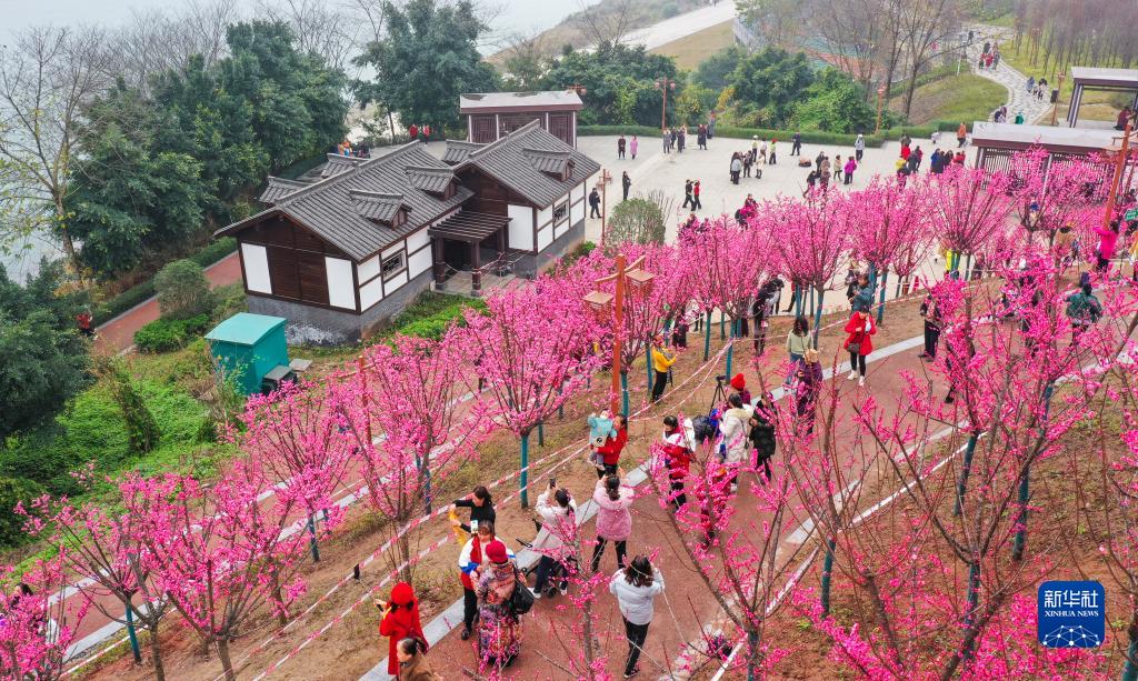 2月9日,在四川瀘州市江陽(yáng)區一公園里,市民在賞花游玩。