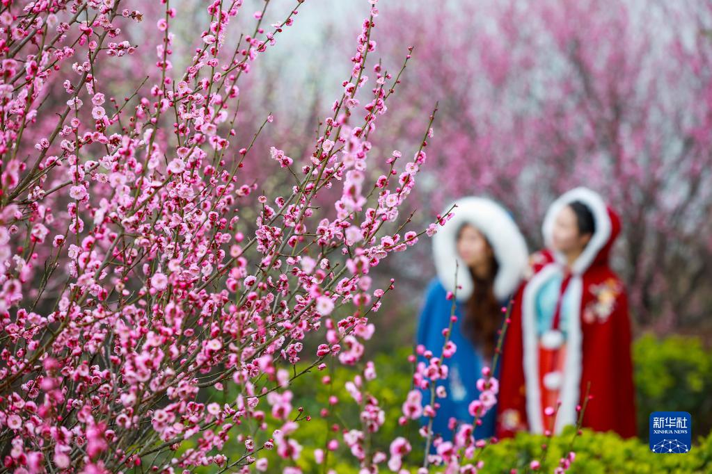 2月10日,游人在湖北省宜昌市秭歸縣屈原故里景區賞梅。