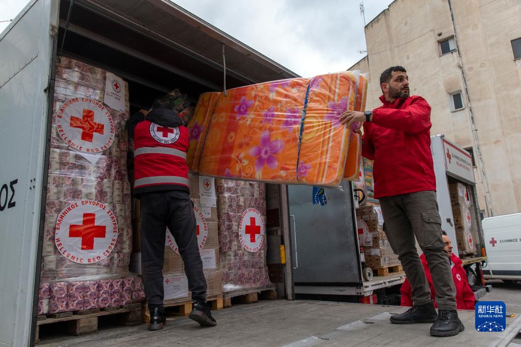 2月10日,紅十字會(huì )工作人員在希臘雅典將救援物資裝車(chē)。