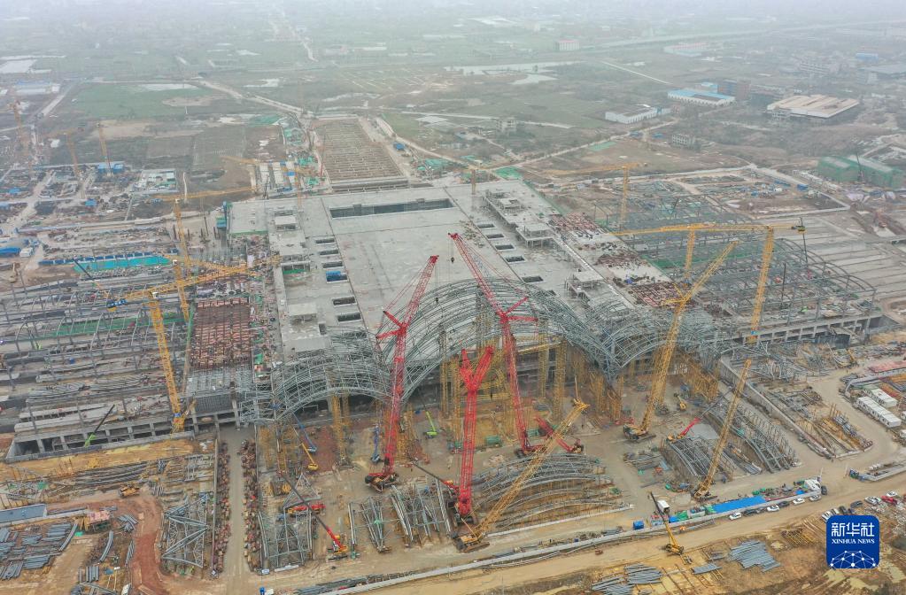 近期,由中鐵建工集團承建的南昌東站站房正在加緊施工。