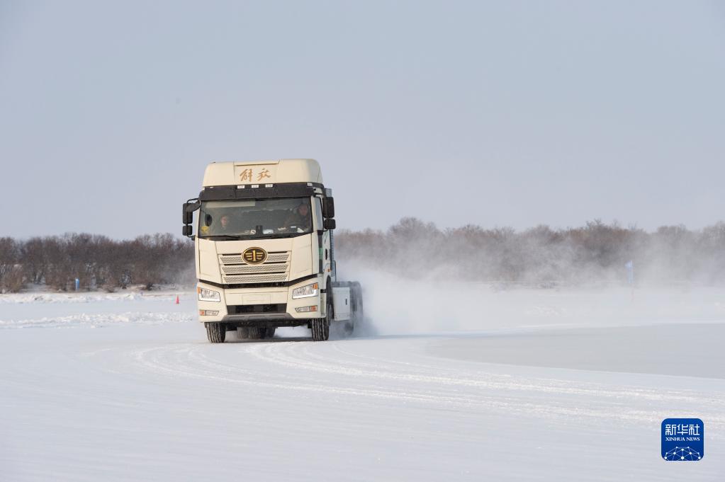 2月10日,在黑河小烏斯力測試基地,車(chē)輛進(jìn)行寒區試驗。