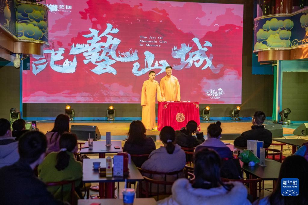 2月10日晚,游客在位于重慶市渝中區的十八梯傳統風(fēng)貌區觀(guān)看相聲表演。