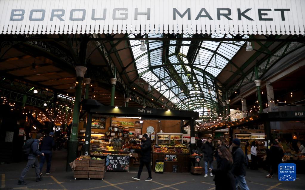 2月9日,人們在英國倫敦博羅市場(chǎng)內采購。