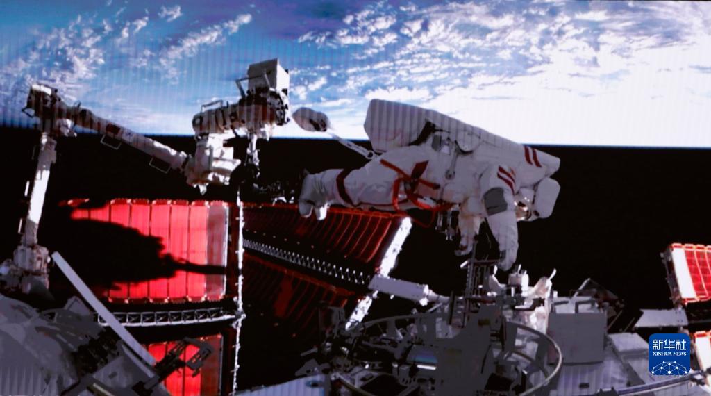 2月9日在北京航天飛行控制中心拍攝的神舟十五號航天員費俊龍進(jìn)艙前轉運設備的畫(huà)面。