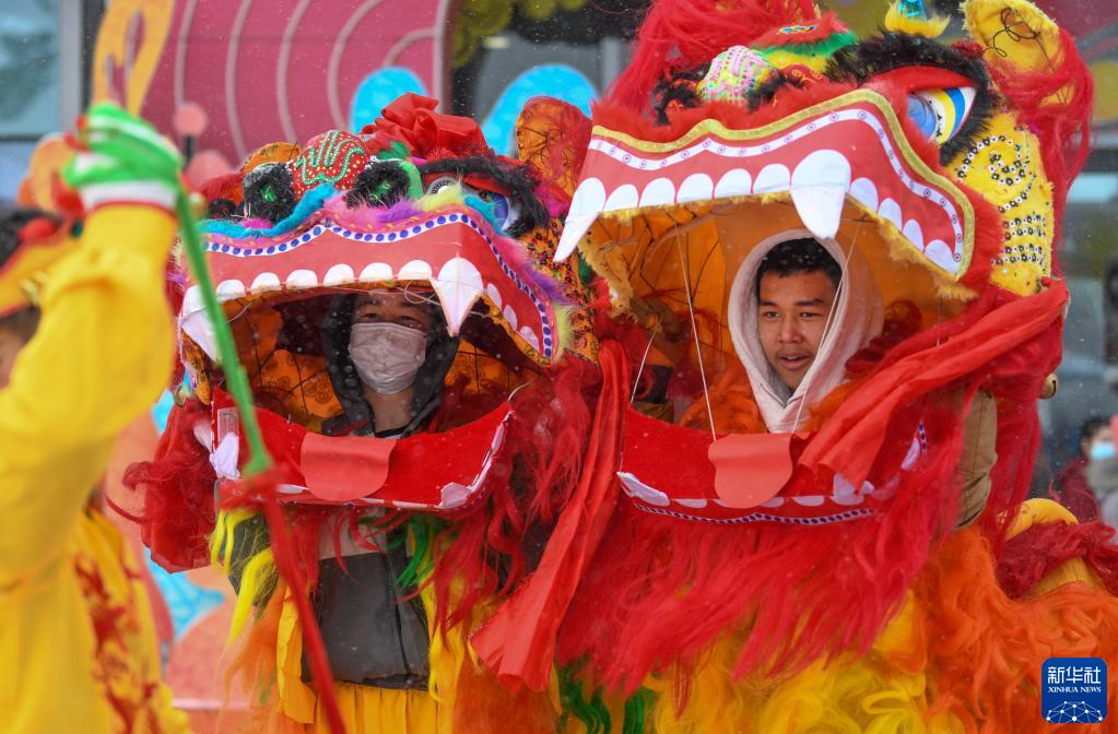 烏魯木齊天山萬(wàn)科廣場(chǎng),民間社火團隊演員在表演(2023年1月22日攝)。新華社記者 王菲 攝
