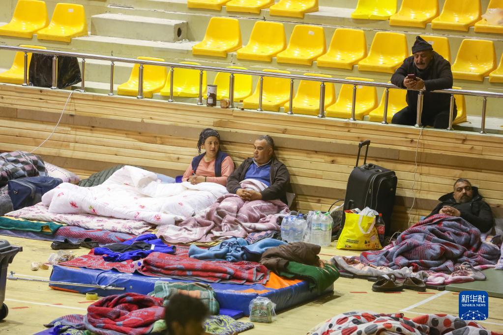 2月11日,受地震影響的人們在土耳其哈塔伊省安塔基亞市的一個(gè)體育館休息。