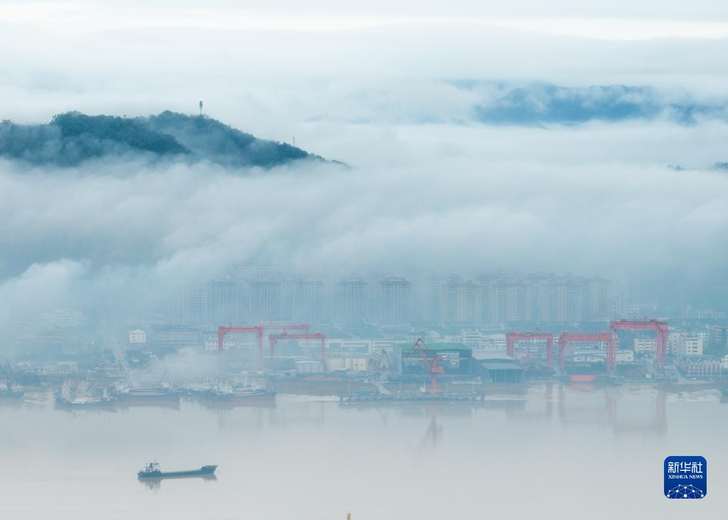 當日,浙江省臺州市椒江區,在暖濕氣流和降雨的共同影響下,霧氣像一層層薄紗將山川、河流、城市籠罩,朦朦朧朧,猶如一幅美麗的生態(tài)城市畫(huà)卷。
