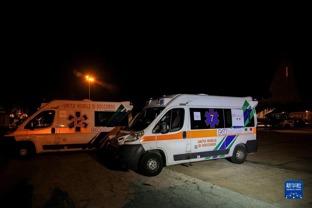 2月11日,意大利援助敘利亞的救護車(chē)運抵黎巴嫩貝魯特拉菲克·哈里里國際機場(chǎng)。