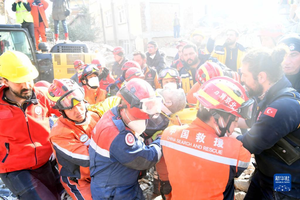 當地時(shí)間12日下午,正在土耳其哈塔伊省安塔基亞市實(shí)施搜救的中國救援隊營(yíng)救出一名幸存者。