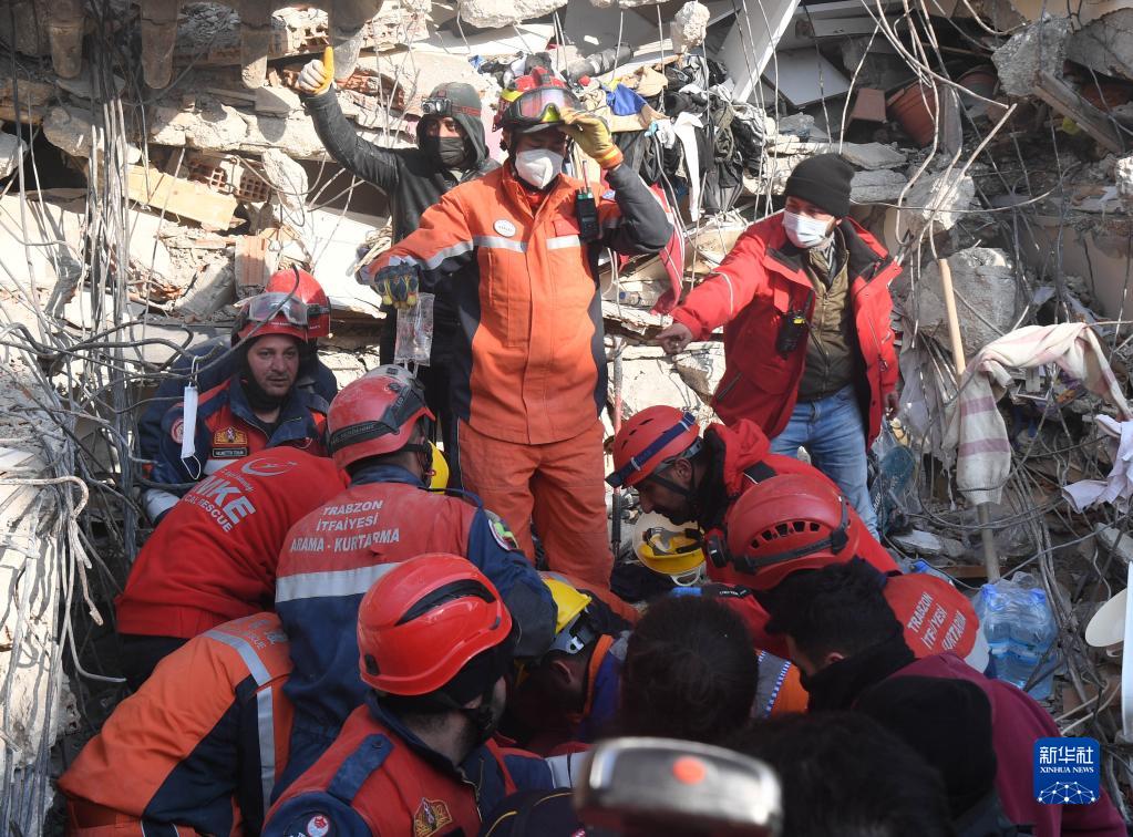 當地時(shí)間12日下午,正在土耳其哈塔伊省安塔基亞市實(shí)施搜救的中國救援隊營(yíng)救出一名幸存者。