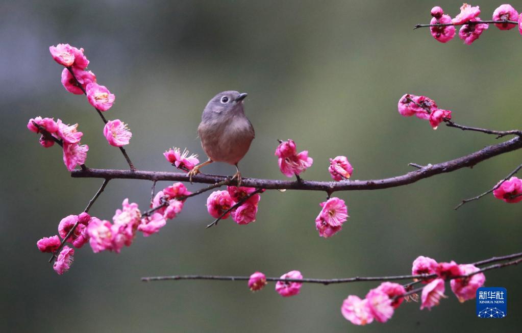 2月12日,在湖南省衡陽(yáng)市雁峰區五星村,小鳥(niǎo)在梅花枝頭停留。