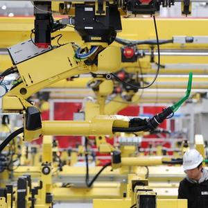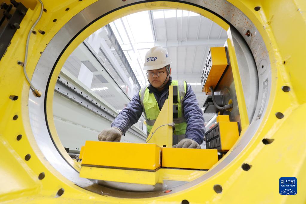 2月12日,德清縣雷甸鎮一家高空作業(yè)機械生產(chǎn)企業(yè)“未來(lái)工廠(chǎng)”車(chē)間,工人在調試智能化生產(chǎn)線(xiàn)。