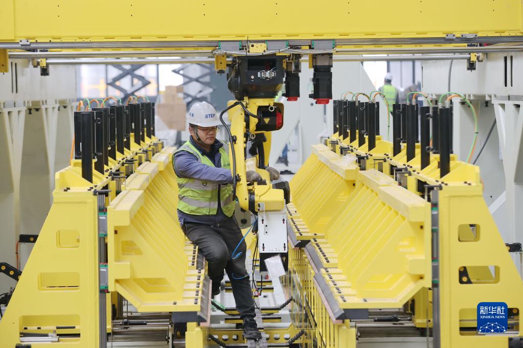 2月12日,德清縣雷甸鎮一家高空作業(yè)機械生產(chǎn)企業(yè)“未來(lái)工廠(chǎng)”車(chē)間,工人在調試智能化生產(chǎn)線(xiàn)。