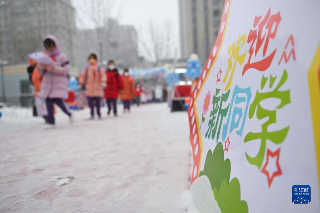 當日,青海省西寧市的小學(xué)生迎來(lái)開(kāi)學(xué)首日,孩子們在降雪中開(kāi)啟新學(xué)期。