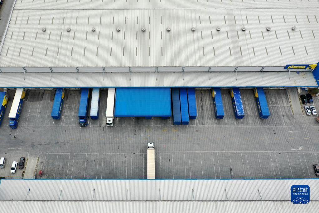 2月13日,快遞運送貨車(chē)??吭谫F州快遞物流園內(無(wú)人機照片)。