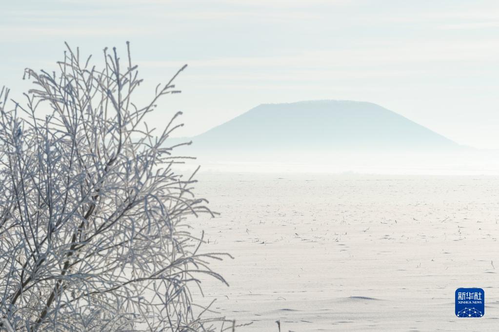 位于黑龍江省黑河市的五大連池風(fēng)景區火山與霧凇景觀(guān)(2月13日攝)。
