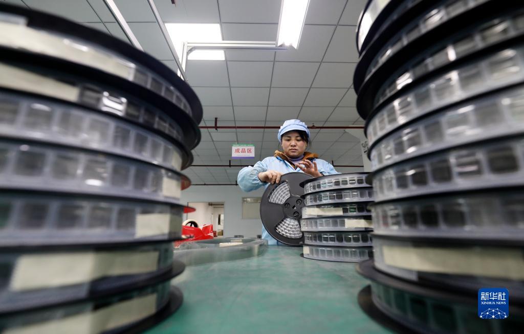 2月14日,湖南資興經(jīng)濟開(kāi)發(fā)區一家電子公司,工人在自動(dòng)化生產(chǎn)車(chē)間包裝產(chǎn)品。
