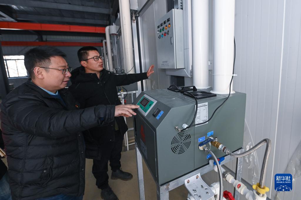 2月14日,返鄉創(chuàng )業(yè)青年包洪軍(右)就檢修升級育苗車(chē)間的設備問(wèn)題向“田間課堂”小分隊農技專(zhuān)家俞俊進(jìn)行咨詢(xún)。包洪軍大學(xué)畢業(yè)后回鄉承包了1000多畝農田,使用完善的機械作業(yè)、無(wú)人機植保等現代農業(yè)技術(shù),打造現代化糧倉。
