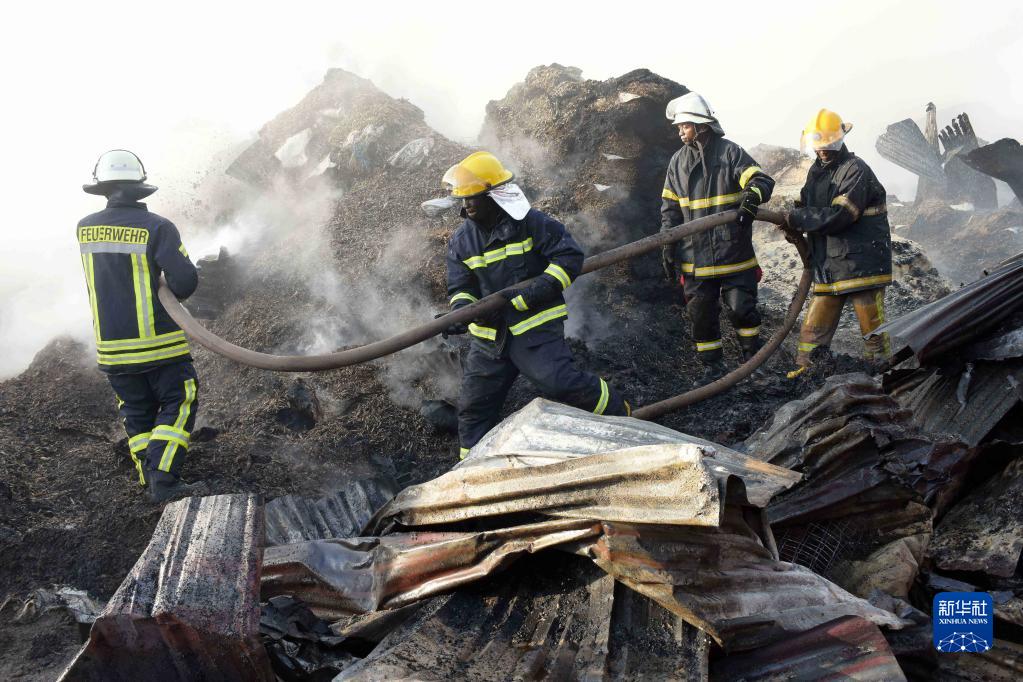 2月13日,在烏干達首都坎帕拉近郊的基塞尼,消防員進(jìn)行滅火作業(yè)。