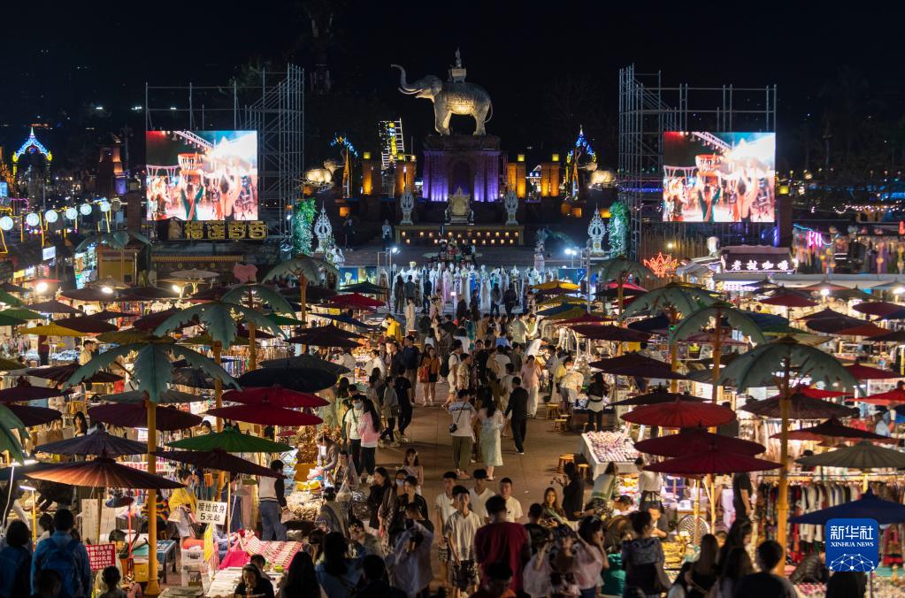 這是2月12日拍攝的西雙版納州景洪市告莊西雙景星光夜市一景。