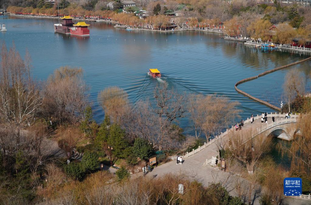 2月14日,山東省濟南市天下第一泉風(fēng)景區,游客在大明湖游覽。