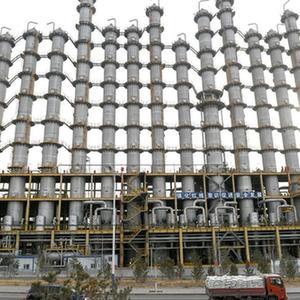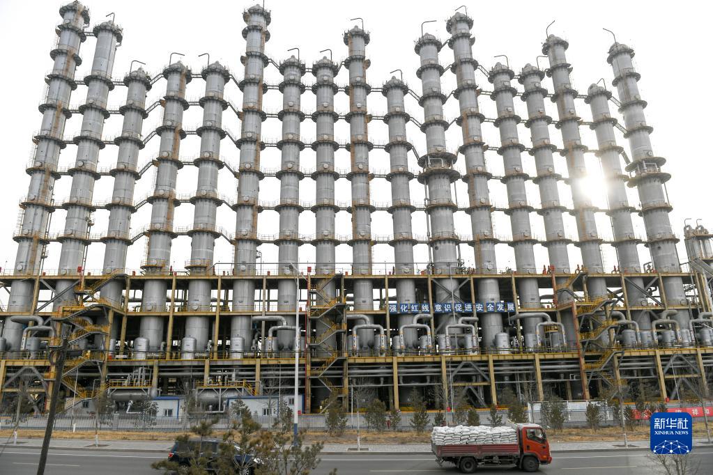 2月14日拍攝的內蒙古通威高純晶硅有限公司的精餾塔。