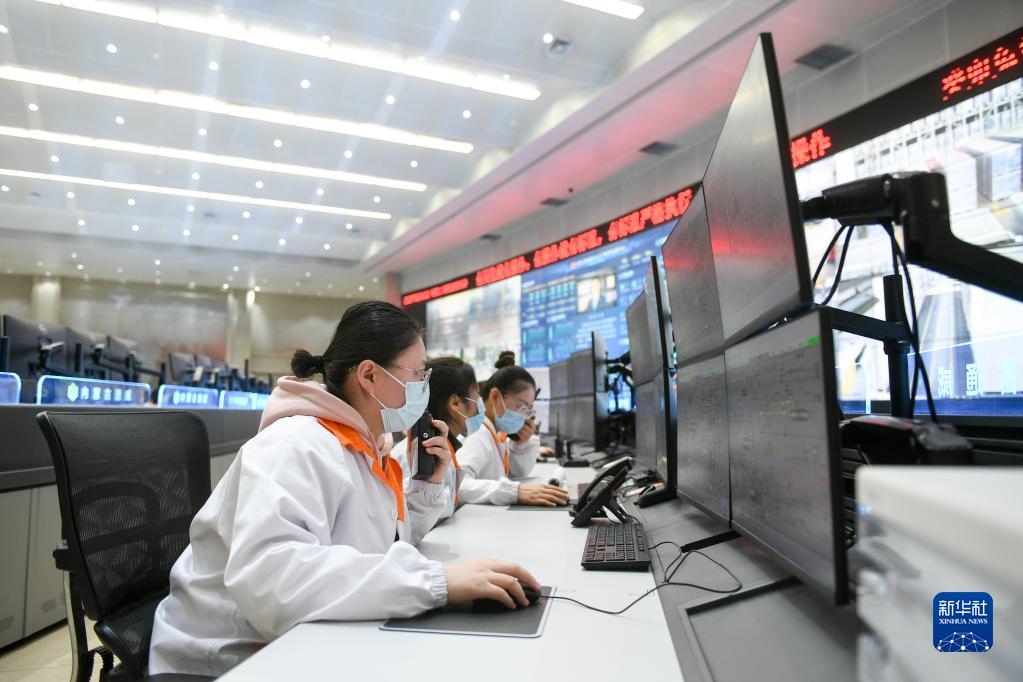 2月14日,工作人員在內蒙古通威高純晶硅有限公司中控室監控生產(chǎn)設備運行情況。