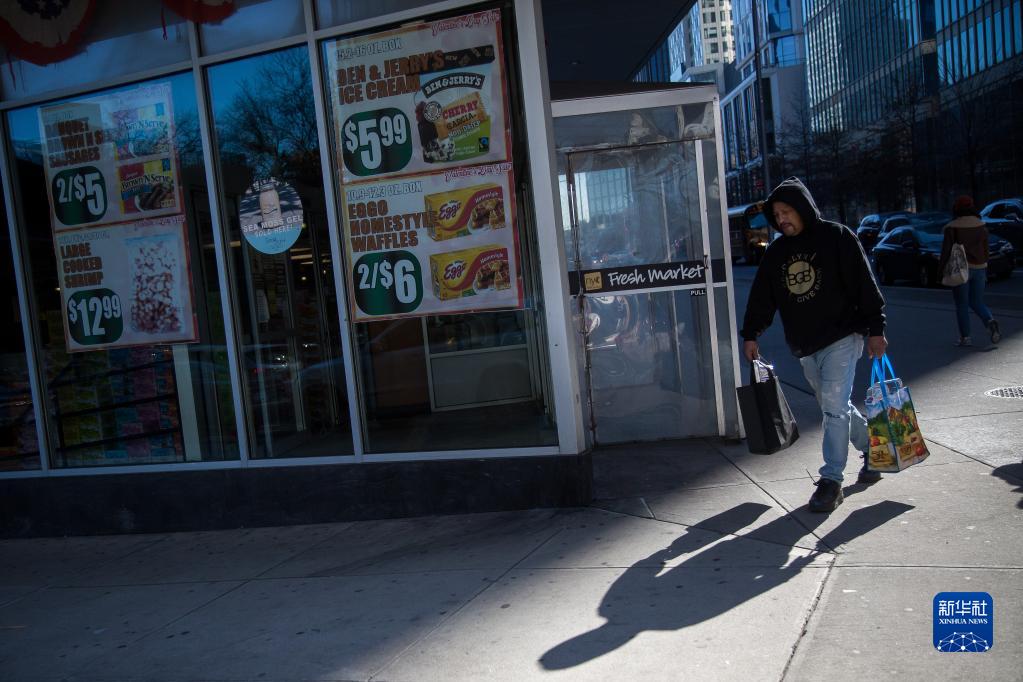 2月14日,在美國紐約市布魯克林,一名男子從食品雜貨店旁走過(guò)。
