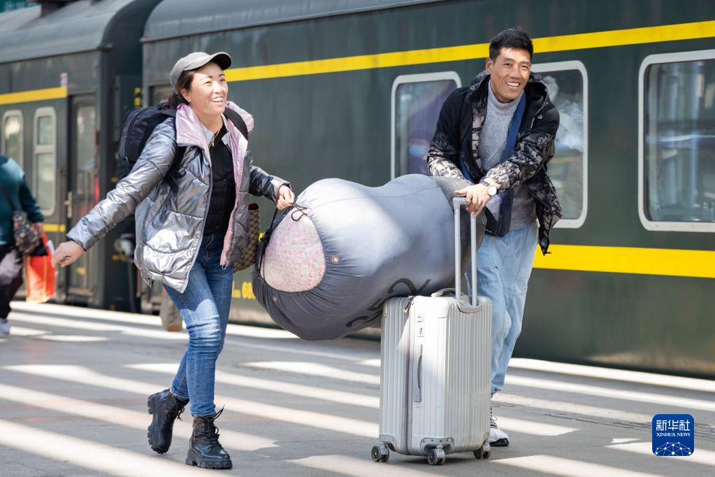 2月15日,旅客在南京火車(chē)站乘車(chē)出行。