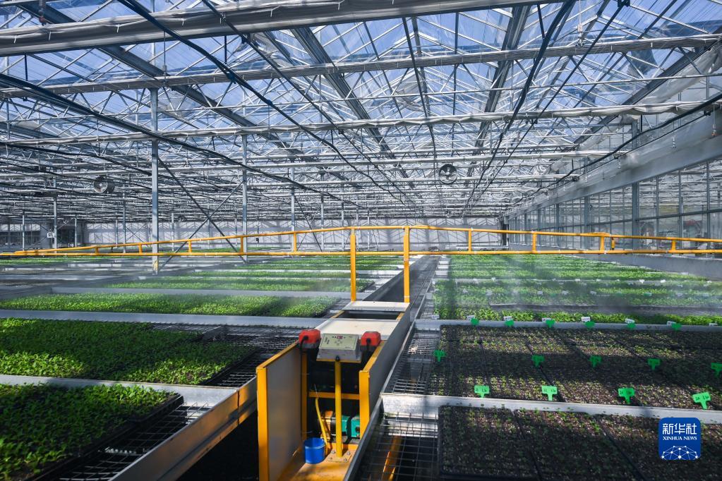 2月15日,在浙江省嘉興市南湖區鳳橋鎮一個(gè)有機農業(yè)園的育苗大棚內,自動(dòng)化設備在給菜苗澆水。該農業(yè)園配備數字化智慧農業(yè)系統,引進(jìn)農業(yè)機器人進(jìn)行施肥、澆水、翻耕、播種、植保等農事工作。