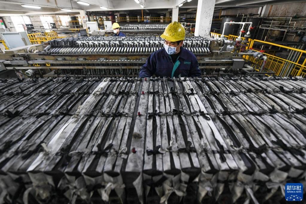 常州第六元素材料科技股份有限公司的工人在巡視石墨烯洗滌壓濾設備(2月14日攝)。