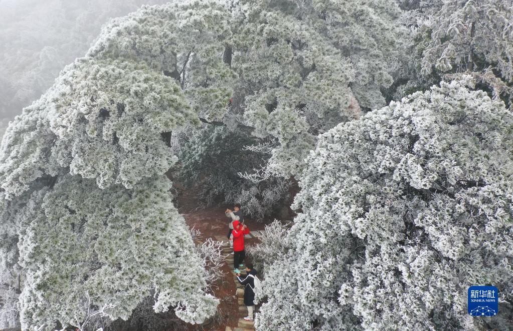 當日,湖南省衡陽(yáng)市南岳衡山風(fēng)景區雪后初霽,晶瑩剔透的霧凇在云海里若隱若現,景色如畫(huà)。